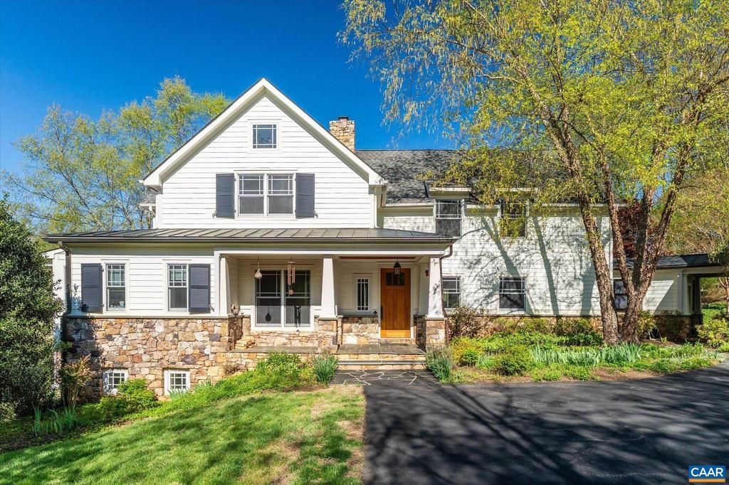 Nestled privately overlooking Blue Ridge views, this totally custom 5 bedroom 4.5 bath Arts & Crafts farmhouse is truly a remarkable offering built by the current owners who spared no expense creating this unique residence. From the beautiful heart pine floors to the incredible dry laid stonework at the massive family room fireplace to the wonderful bluestone terrace & Buckingham slate covered patio & screened-in porch overlooking the views, there are wonderful, timeless finish details at every turn. The 3 car garage is accessed via covered breezeway. A small creek runs along the back of the property. Other noteworthy features incl' an expansive 1st floor primary, whole house generator, fiber internet, and 4 HVAC zones w/ hydrothermal heating w/ ultra-high efficiency gas fired boiler. The large mudroom has sink & built-in cubbies. Flooring incl' heart pine, Buckingham slate & marble. Other notable extras include a wet bar, extensive wainscotting & built-ins incl' window seats. The kitchen showcases completely custom, solid wood cabinetry, honed granite counters, 48" fridge, Wolf gas cooktop w/ commercial hood, warming drawer, double ovens & wooden center island. Please see the detailed list of features in the documents tab.,Granite Counter,Wood Cabinets,Wood Counter,Fireplace in Family Room
