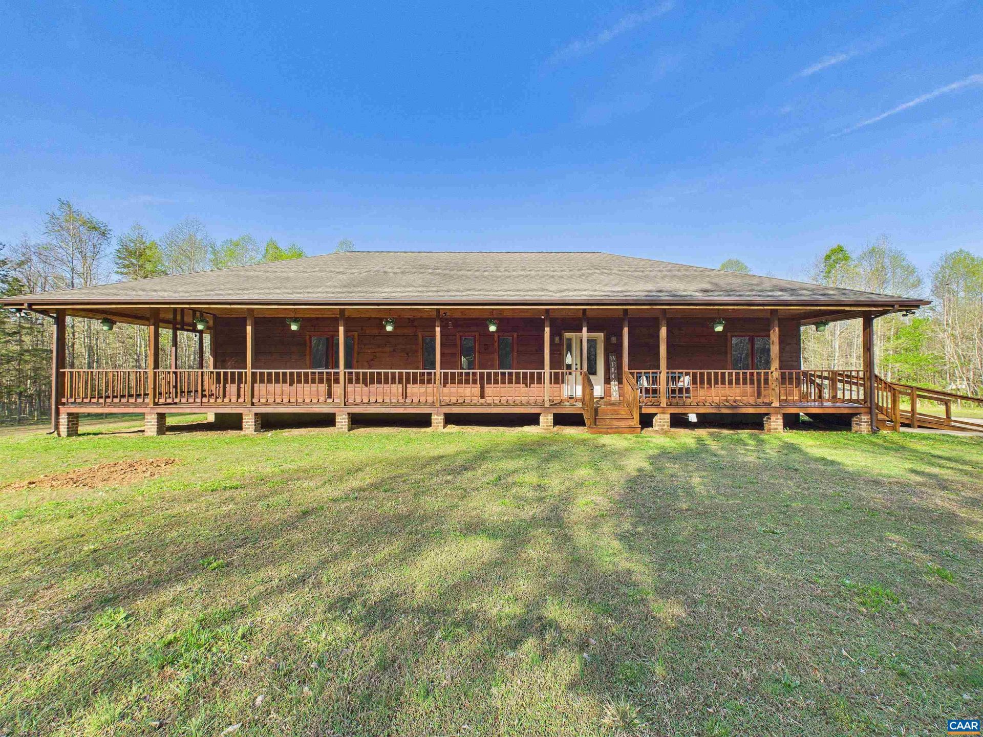 Welcome to your serene retreat at 469 Jenkins Church Rd, where tranquility meets modern comfort on 23.70 private acres. This charming cedar log cabin features a wrap-around porch perfect for relaxing and enjoying peaceful views, all while staying conveniently close to Powhatan, Richmond, Farmville, and Charlottesville. Inside, soaring cathedral ceilings highlight the spacious living room, creating a warm, open feel. The kitchen offers ample cabinetry and a generous eat-in area, making it ideal for gatherings and everyday living. The primary suite provides a private escape with cathedral ceilings, a ceiling fan, plush carpeting, and a walk-in closet. The en-suite bath includes a stand-up shower for added comfort. Two additional bedrooms offer cozy spaces for family or guests. A separate laundry room adds convenience, while the impressive 30x50 garage can accommodate up to four vehicles, a workshop, or storage for hobbies. The property also includes a chicken coop and plenty of space for outdoor living or animals. A propane Generac whole-house generator ensures peace of mind year-round. Enjoy the best of country living with easy access to nearby towns. Schedule your private showing today and make this exceptional property your own.